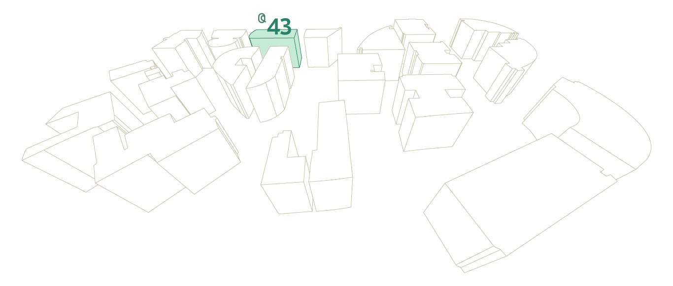 A large, modern building with a glass façade and an impressive view of the surrounding park, providing a tranquil work environment.